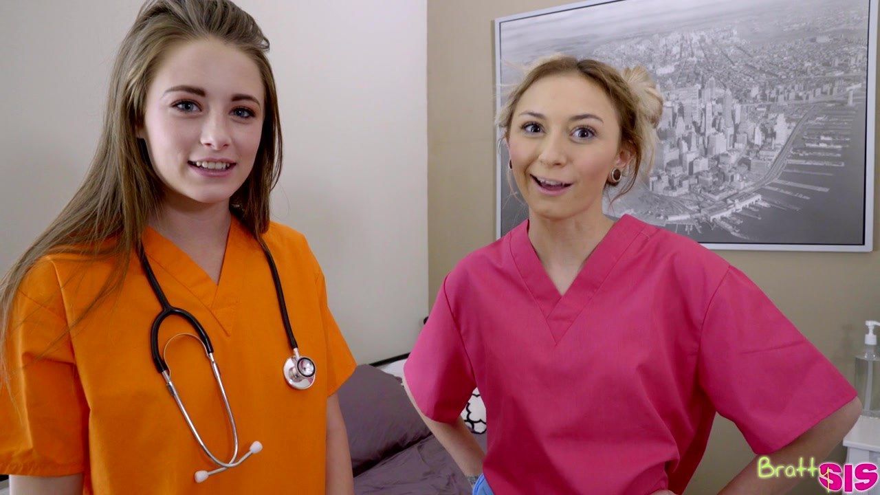 Брат немного удивился просьбе молодой сестры студентки в униформе медсестры, когда она попросила его показать член, но скоро, минет и секс с блондинкой, сделали его смелее и избавили от спермы.