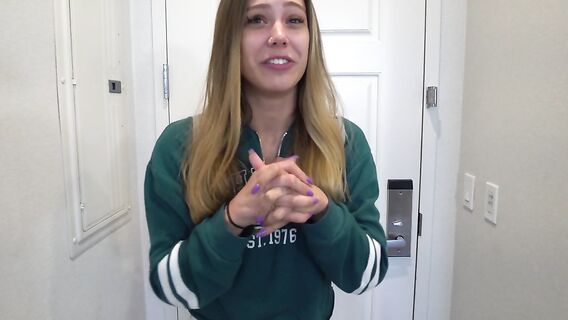 Приехав к сводному брату, юная сестра шатенка просится спать в его постели и он пускает её, с условием того, что она сделает, минет, но она трахается с ним и после секса пробует его сперму на вкус.