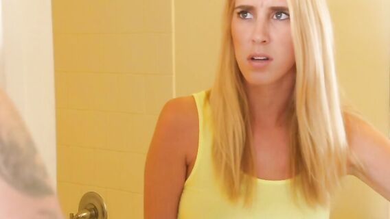 Очередная перепалка сводного брата с молодой сестрой блондинкой закончилась тем, что взбешенный парень повалил телку на кровать, порвал на ней шорты и насильно трахнул её, закрывая её рот сильной рукой.